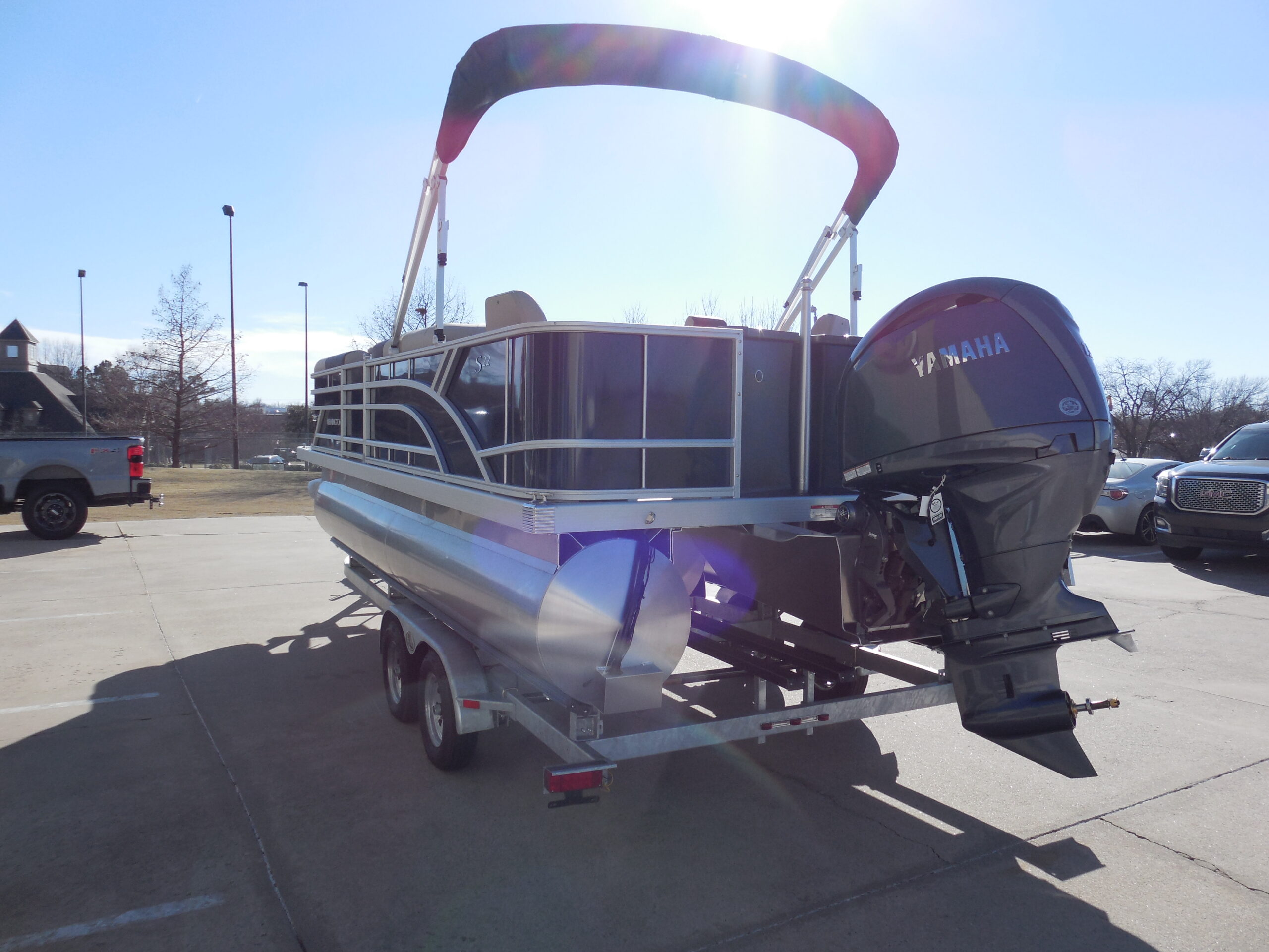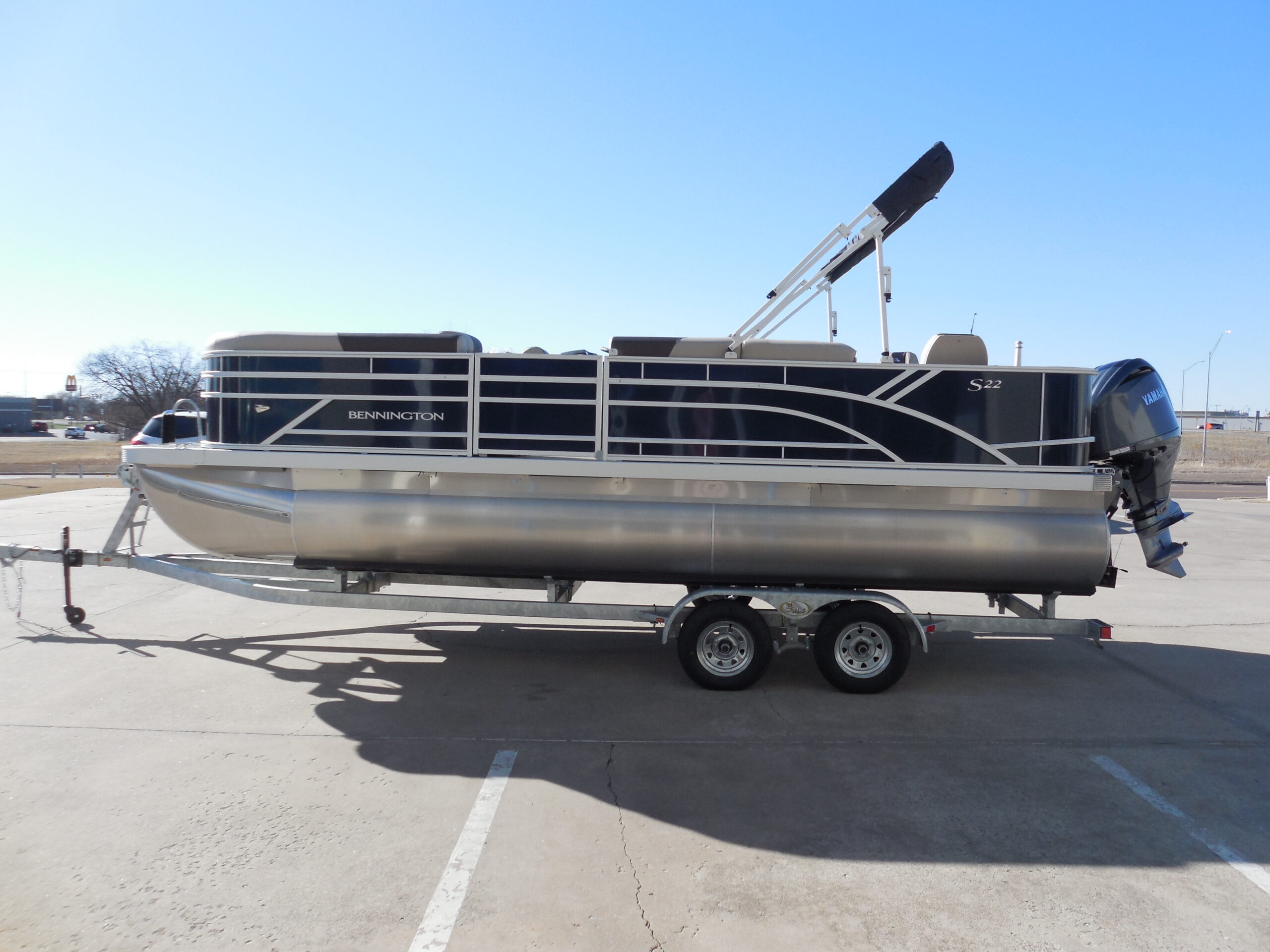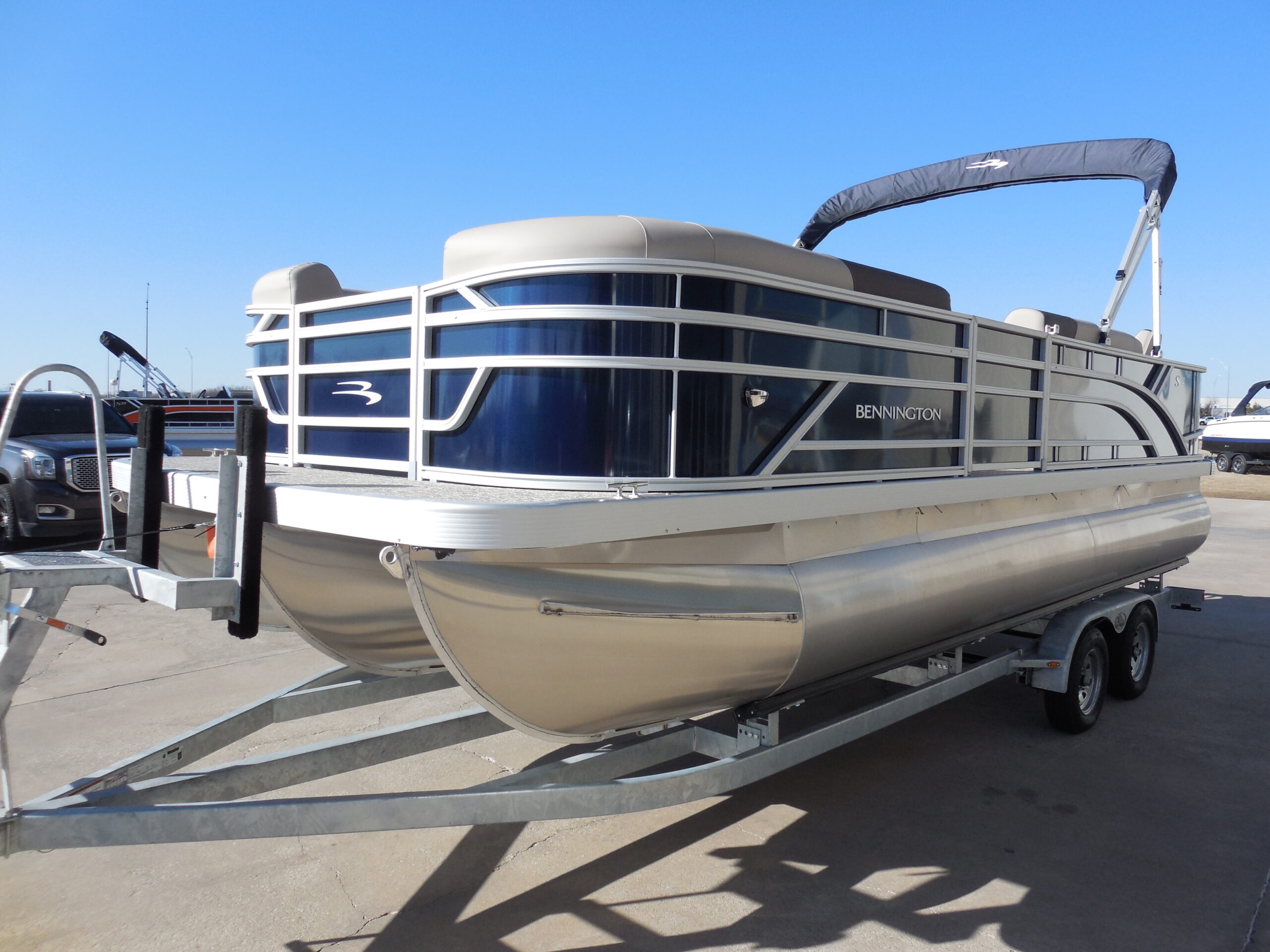 NEW 2026 BENNINGTON 22SFC FISH & CRUISE EXPRESS TUBE TRITOON. YAMAHA F150LC w/ HYD STEERING. SMOOTH PANEL MIDNIGHT BLUE. GARMIN 5 ECHOMAP. ROCKFORD BLUETOOTH AUDIO. IN-FLOOR STORAGE. AFT ANGLER STATION w/ LIVEWELL & (2) FISHING SEATS. SKI/TOW. LED DOCKING LIGHTS. COURTESY GATE LIGHTS. COCKPIT TABLE. 10ft BIMINI. DOLCE INTERIOR. MOORING COVER. TANDEM TRAILER w/ SPARE.
