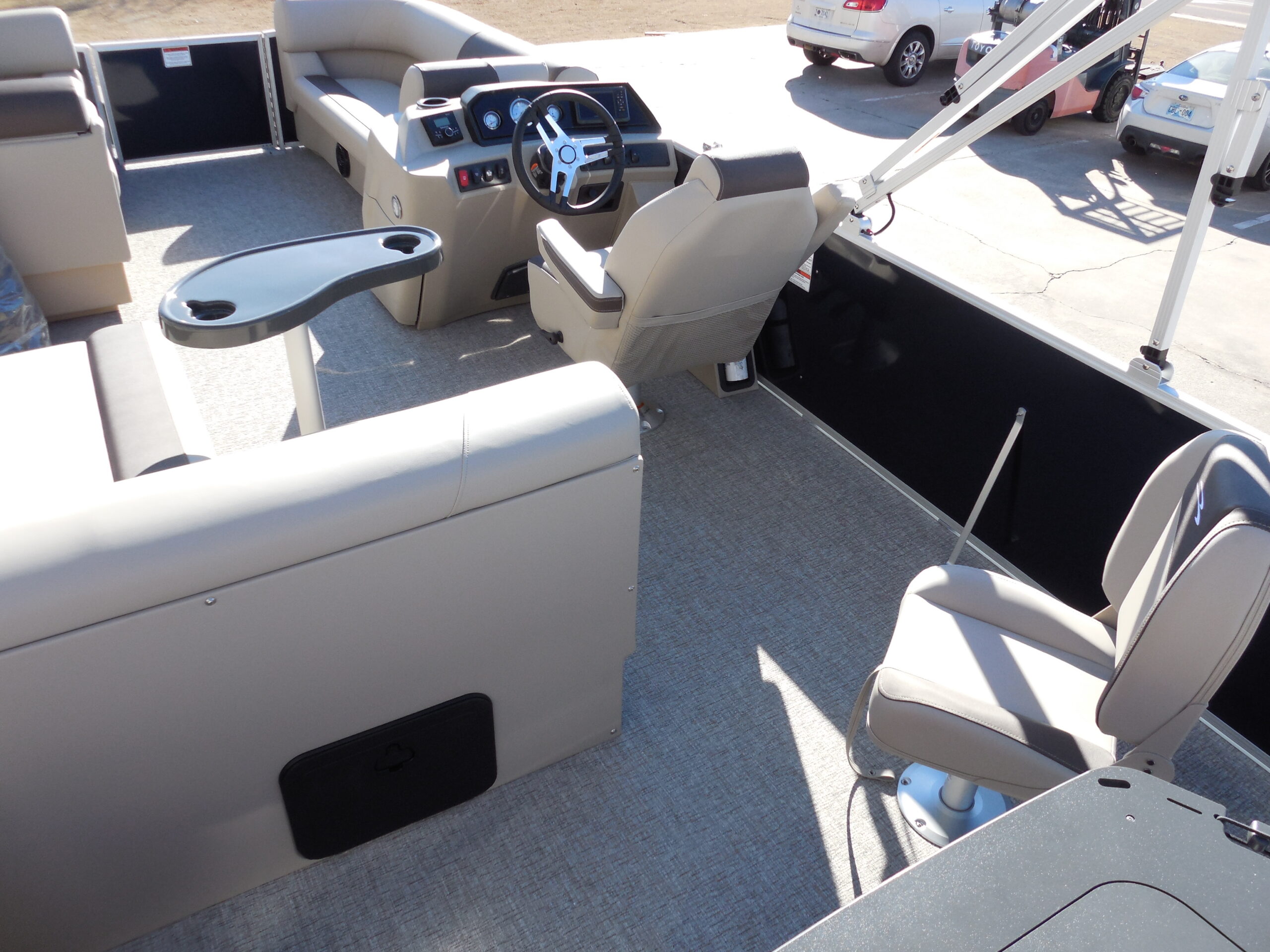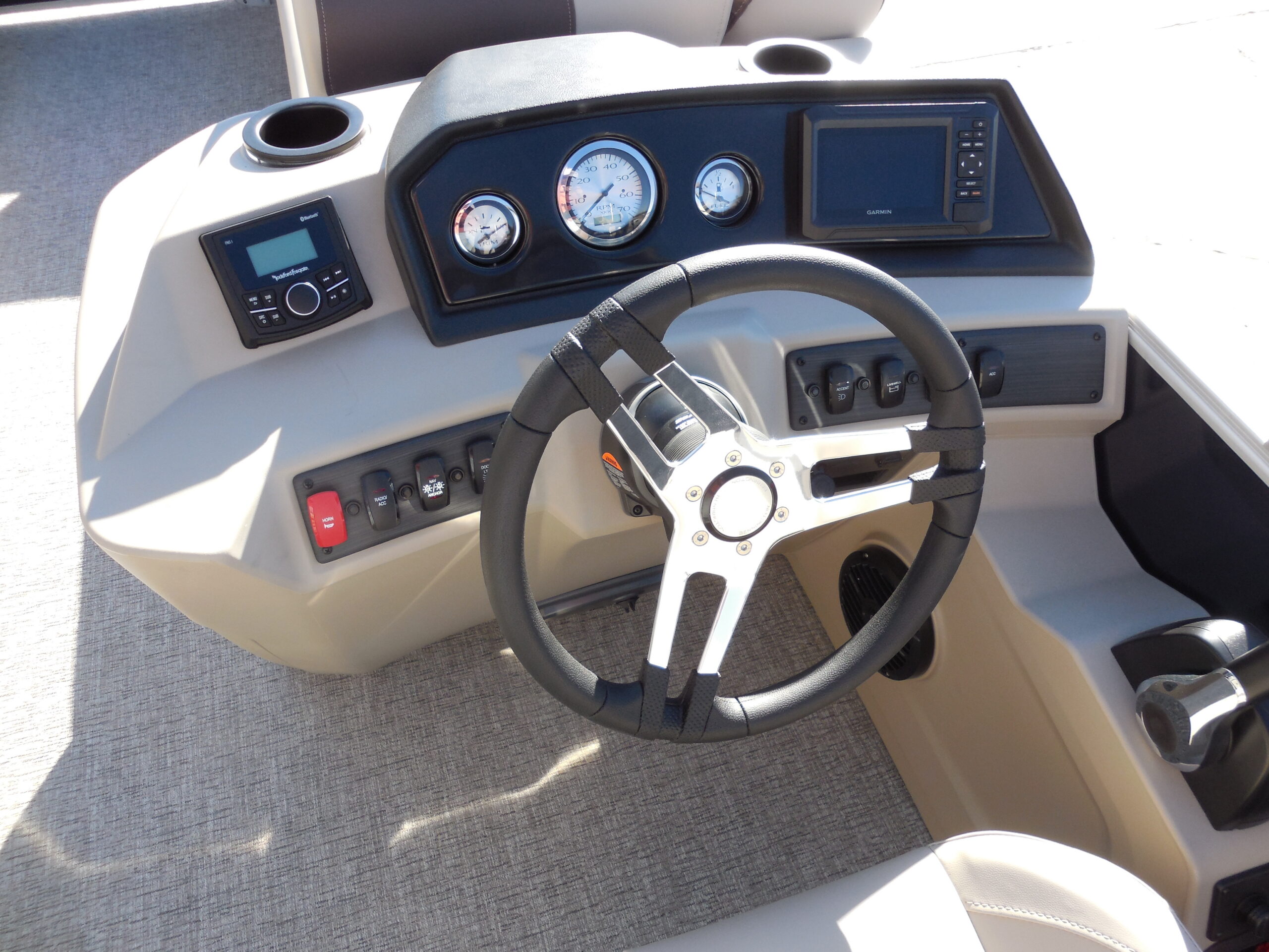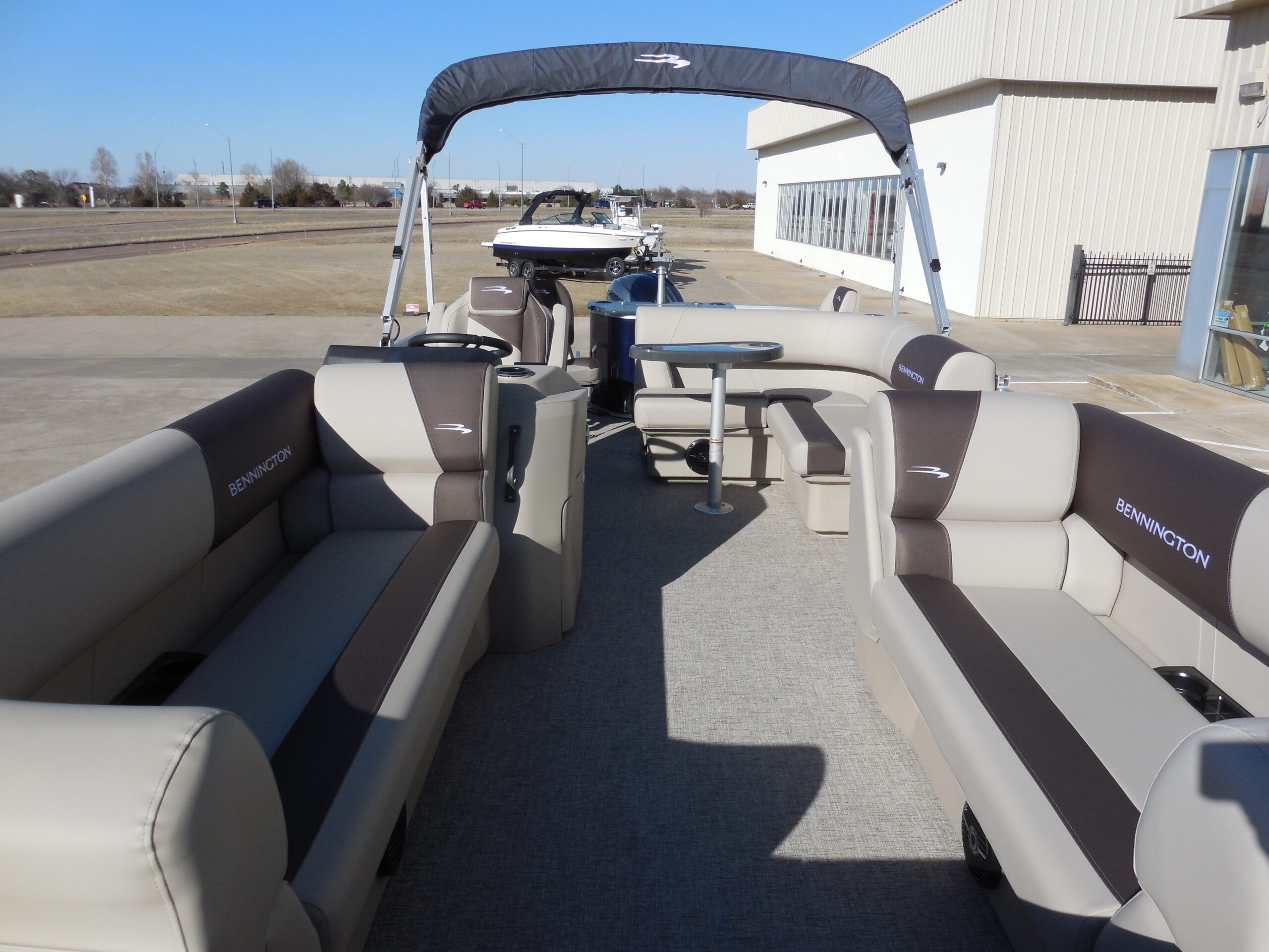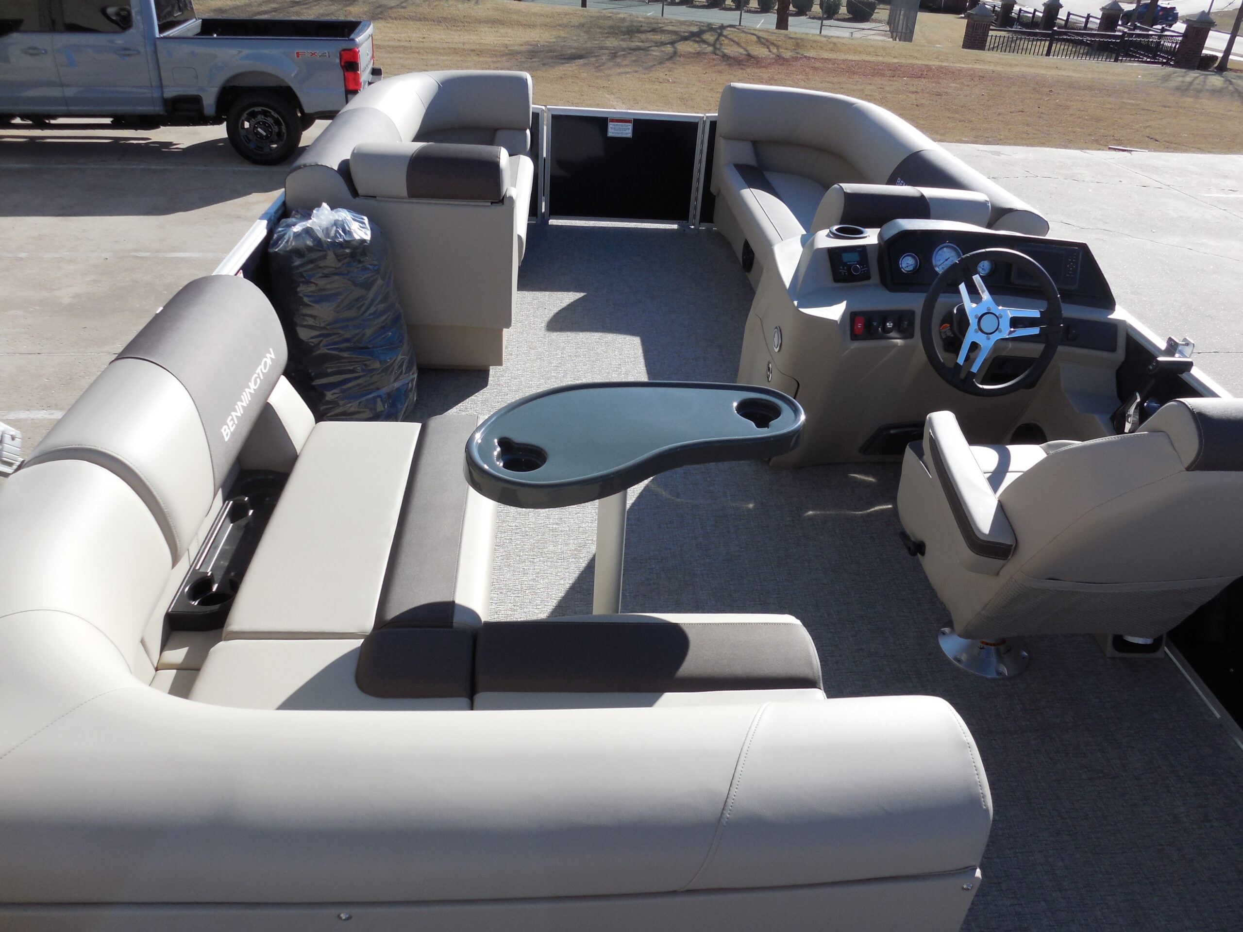 NEW 2026 BENNINGTON 22SFC FISH & CRUISE EXPRESS TUBE TRITOON. YAMAHA F150LC w/ HYD STEERING. SMOOTH PANEL MIDNIGHT BLUE. GARMIN 5 ECHOMAP. ROCKFORD BLUETOOTH AUDIO. IN-FLOOR STORAGE. AFT ANGLER STATION w/ LIVEWELL & (2) FISHING SEATS. SKI/TOW. LED DOCKING LIGHTS. COURTESY GATE LIGHTS. COCKPIT TABLE. 10ft BIMINI. DOLCE INTERIOR. MOORING COVER. TANDEM TRAILER w/ SPARE.