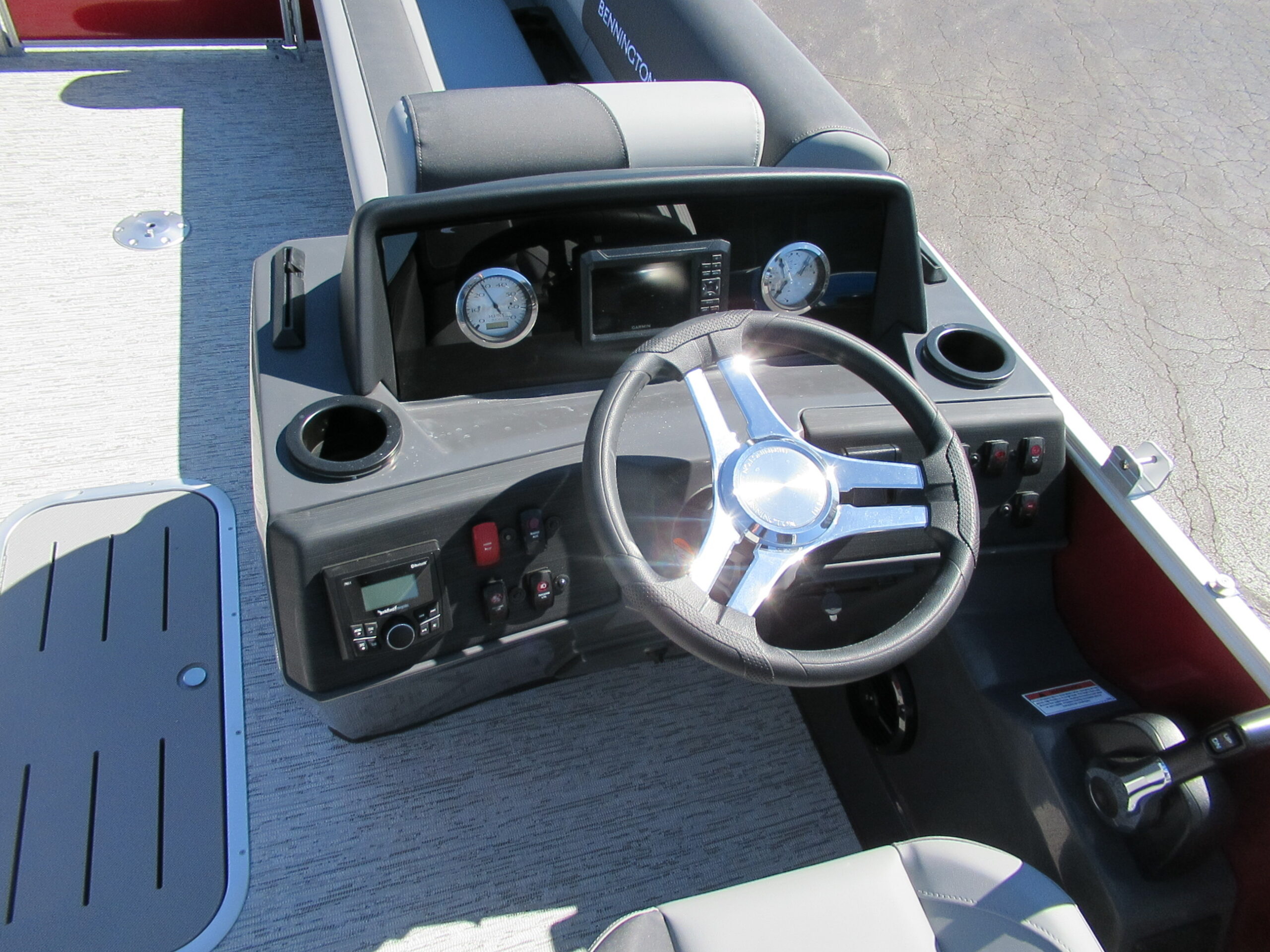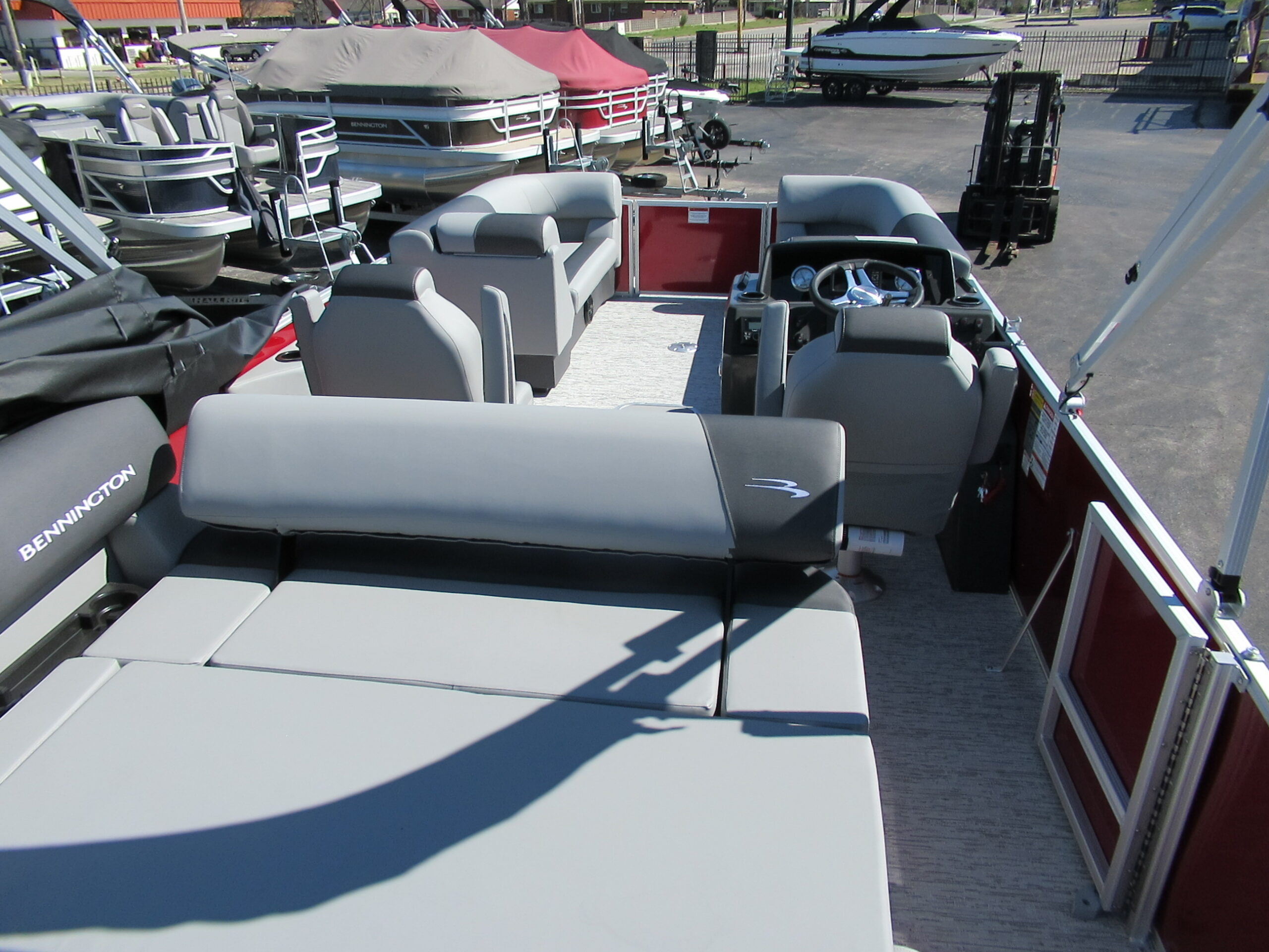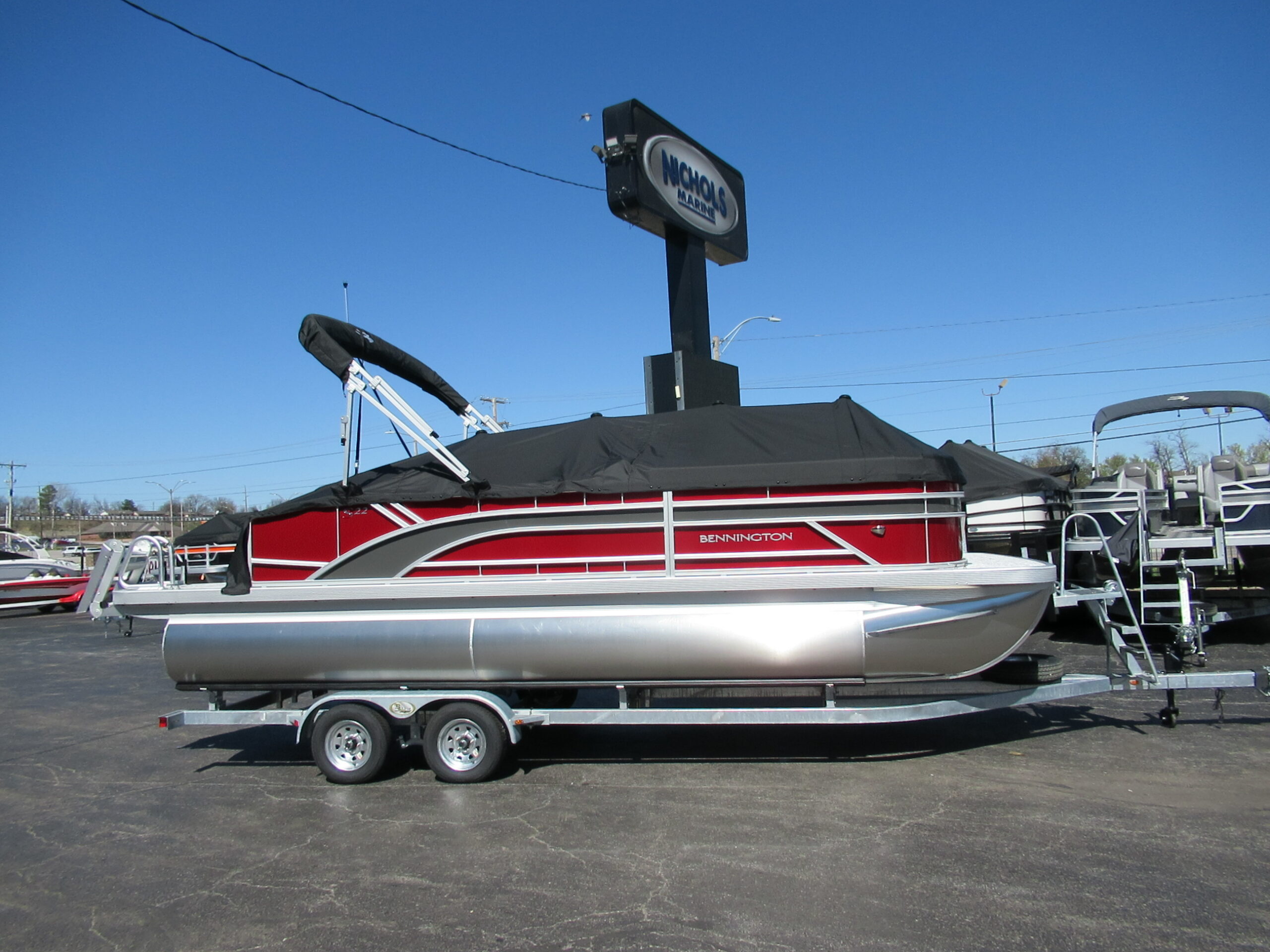NEW 2026 BENNINGTON 22 SSB WITH SPS TRITOON PACKAGE. MERCURY150XL w/ HYD STEERING. SMOOTH PANEL RED WITH ANTHROCITE STRIPE. AFT SWING BACK RECLINGER. SHADOW GREY VINYL. REDESIGNED HELM & WINDSHEILD w/ GARMIN ECHO 5 GPS. ROCKFORD BLUETOOTH AUDIO. LED DOCKING LIGHTS. IN-FLOOR STORAGE. TILT HELM. 10ft BIMINI. RECLINING CAPTAIN & CO-CAPTAIN CHAIRS. EXTENDED AFT DECK. LILLIPAD LADDER. SKI/TOW. MOORING COVER. TANDEM TRAILER w/ SPARE.