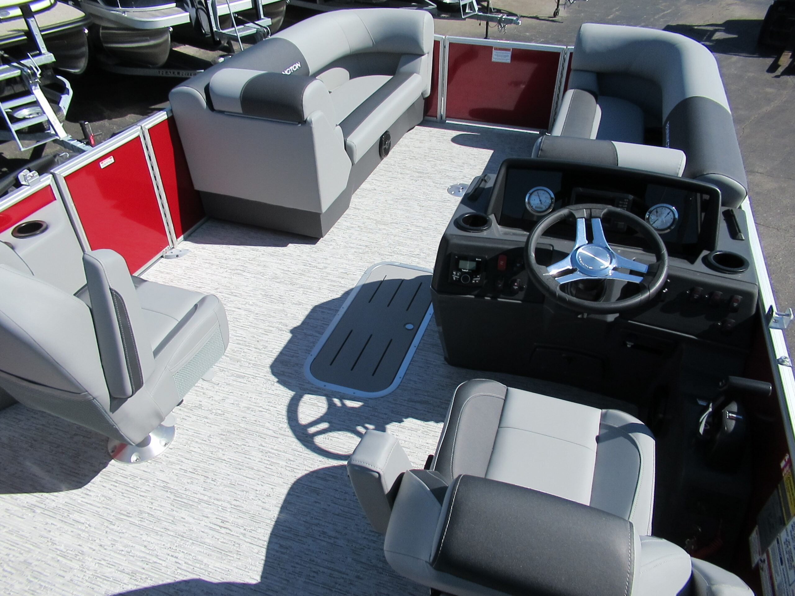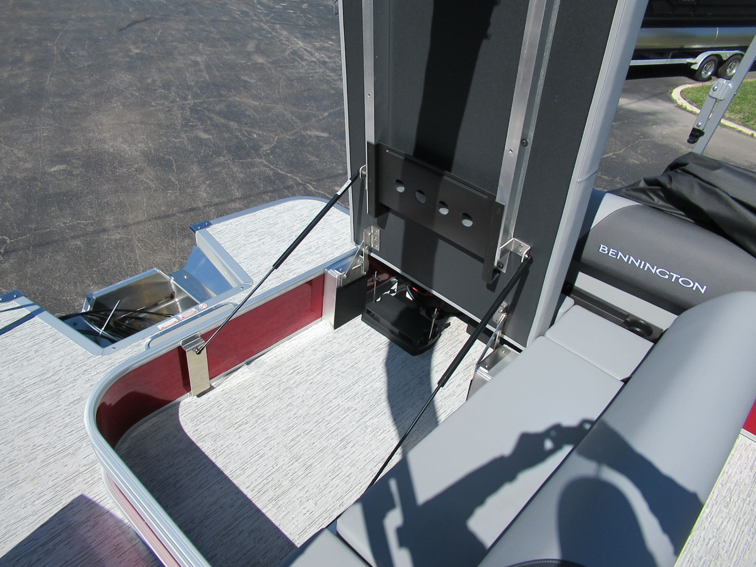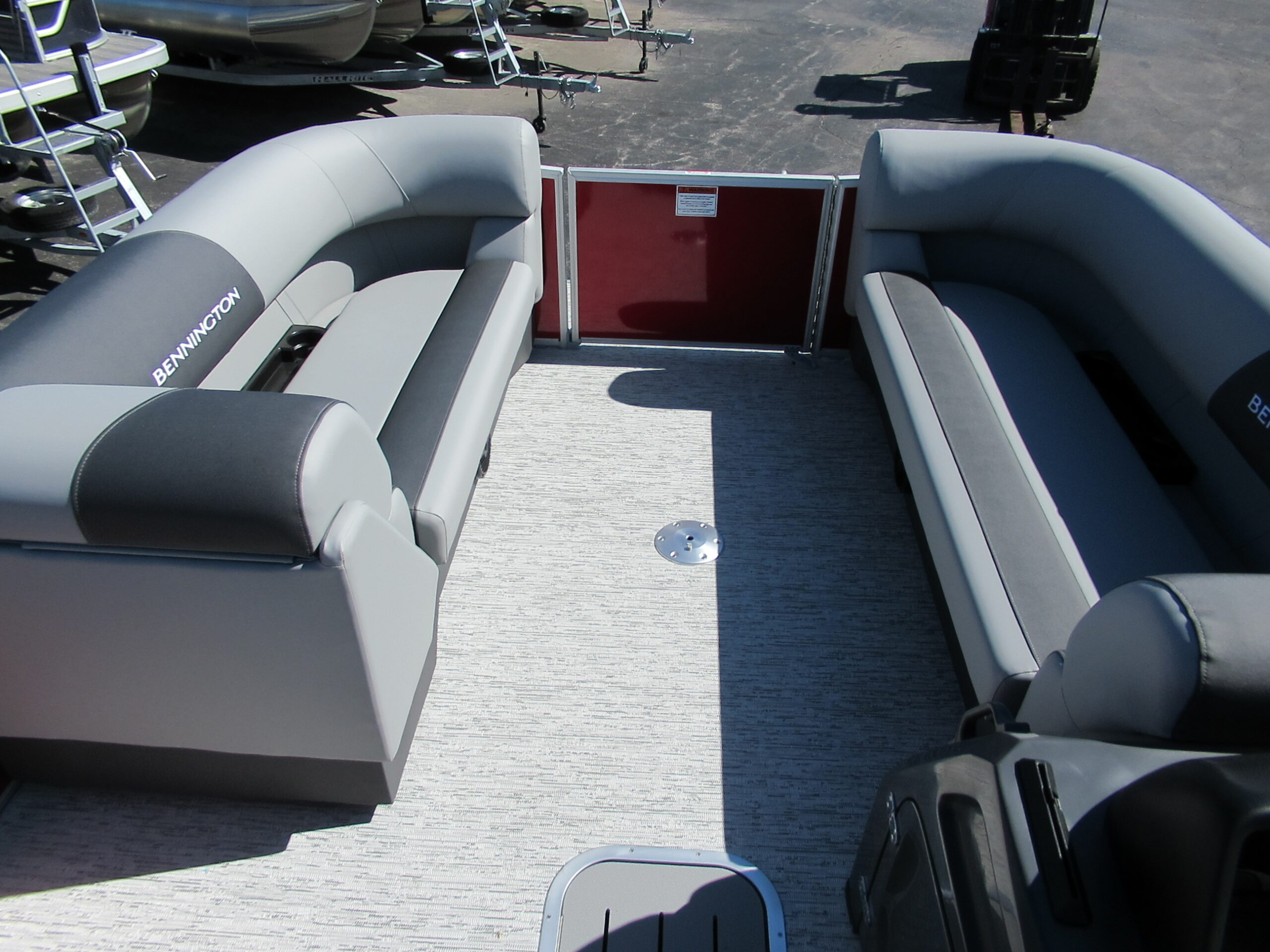 NEW 2026 BENNINGTON 22 SSB WITH SPS TRITOON PACKAGE. MERCURY150XL w/ HYD STEERING. SMOOTH PANEL RED WITH ANTHROCITE STRIPE. AFT SWING BACK RECLINGER. SHADOW GREY VINYL. REDESIGNED HELM & WINDSHEILD w/ GARMIN ECHO 5 GPS. ROCKFORD BLUETOOTH AUDIO. LED DOCKING LIGHTS. IN-FLOOR STORAGE. TILT HELM. 10ft BIMINI. RECLINING CAPTAIN & CO-CAPTAIN CHAIRS. EXTENDED AFT DECK. LILLIPAD LADDER. SKI/TOW. MOORING COVER. TANDEM TRAILER w/ SPARE.