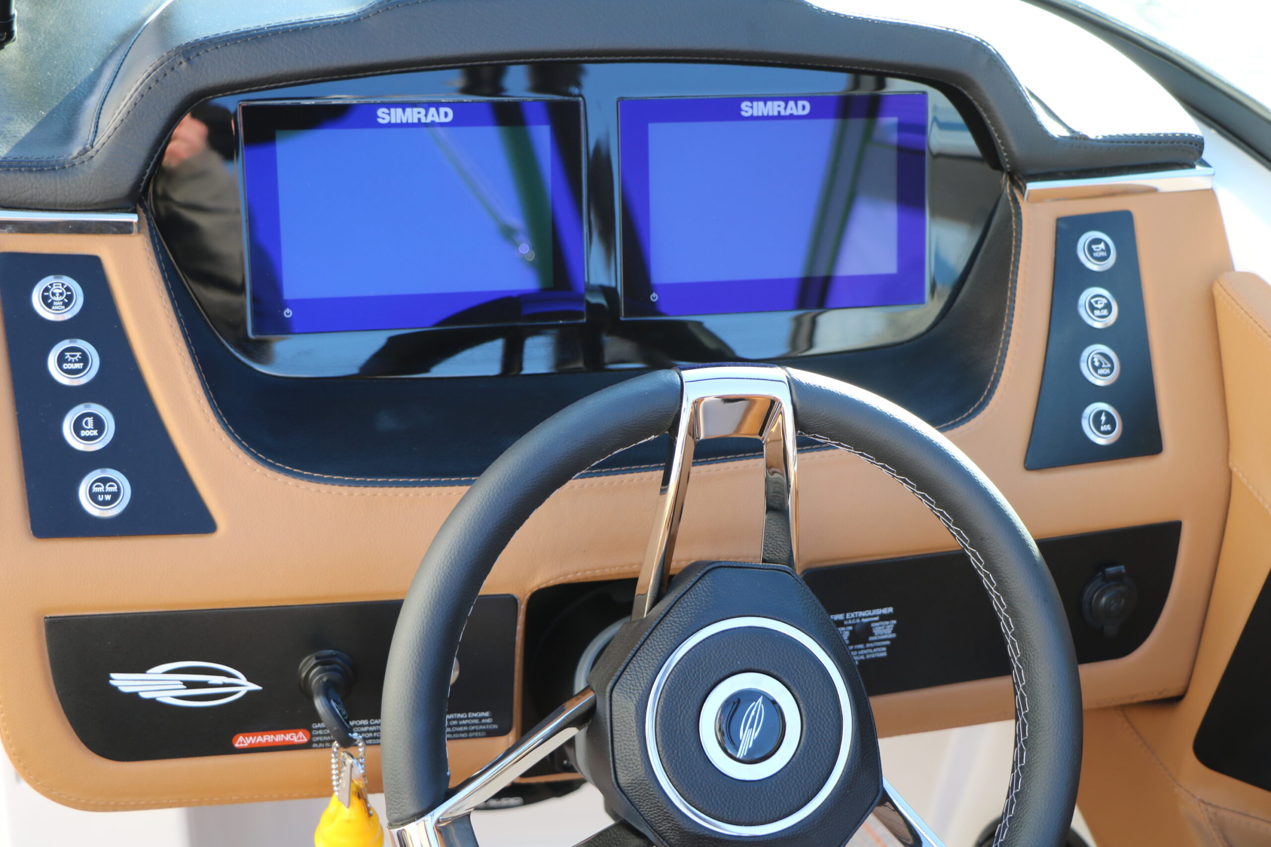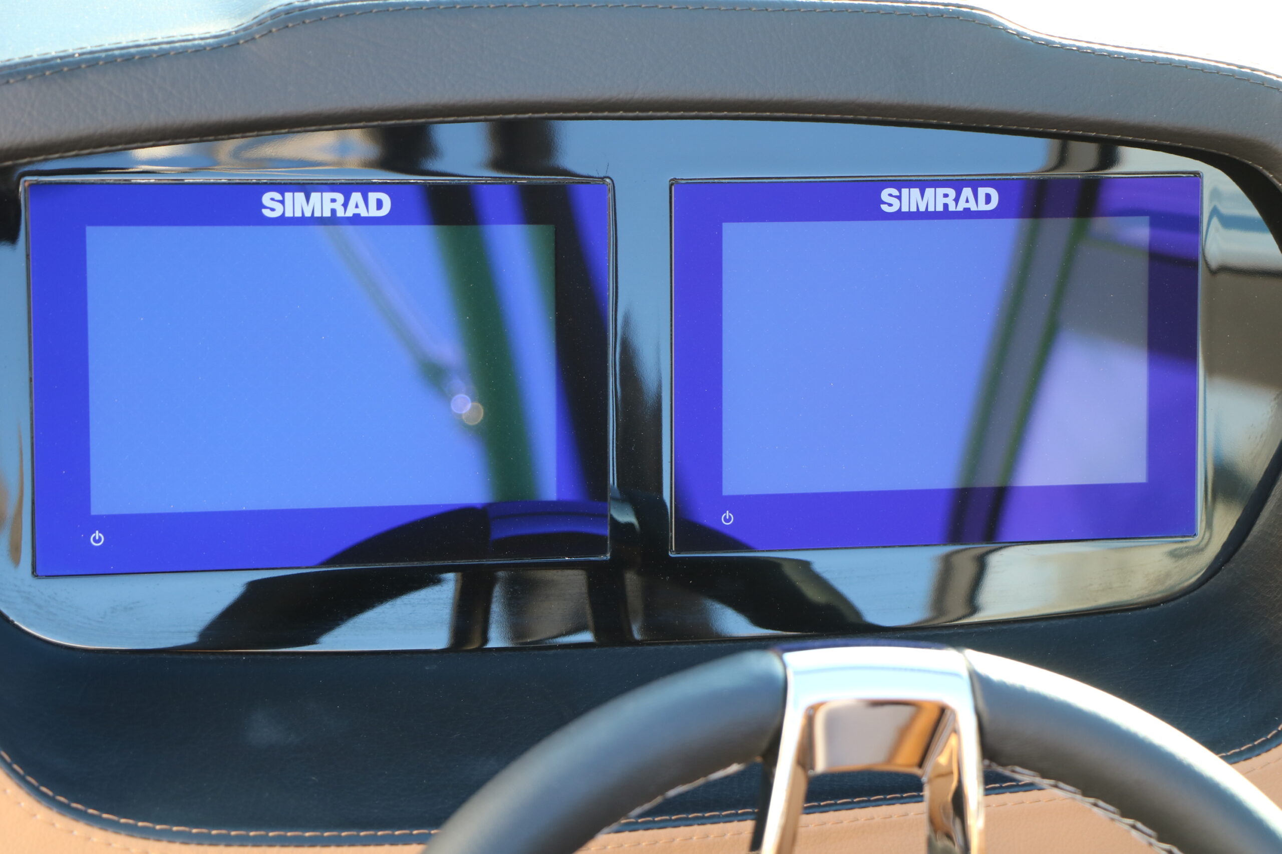 TWIN SIMRAD GO7 CHARTPLOTTER/FISHFINDER WITH ENGINE DATA AND AUDIO CONTROLS