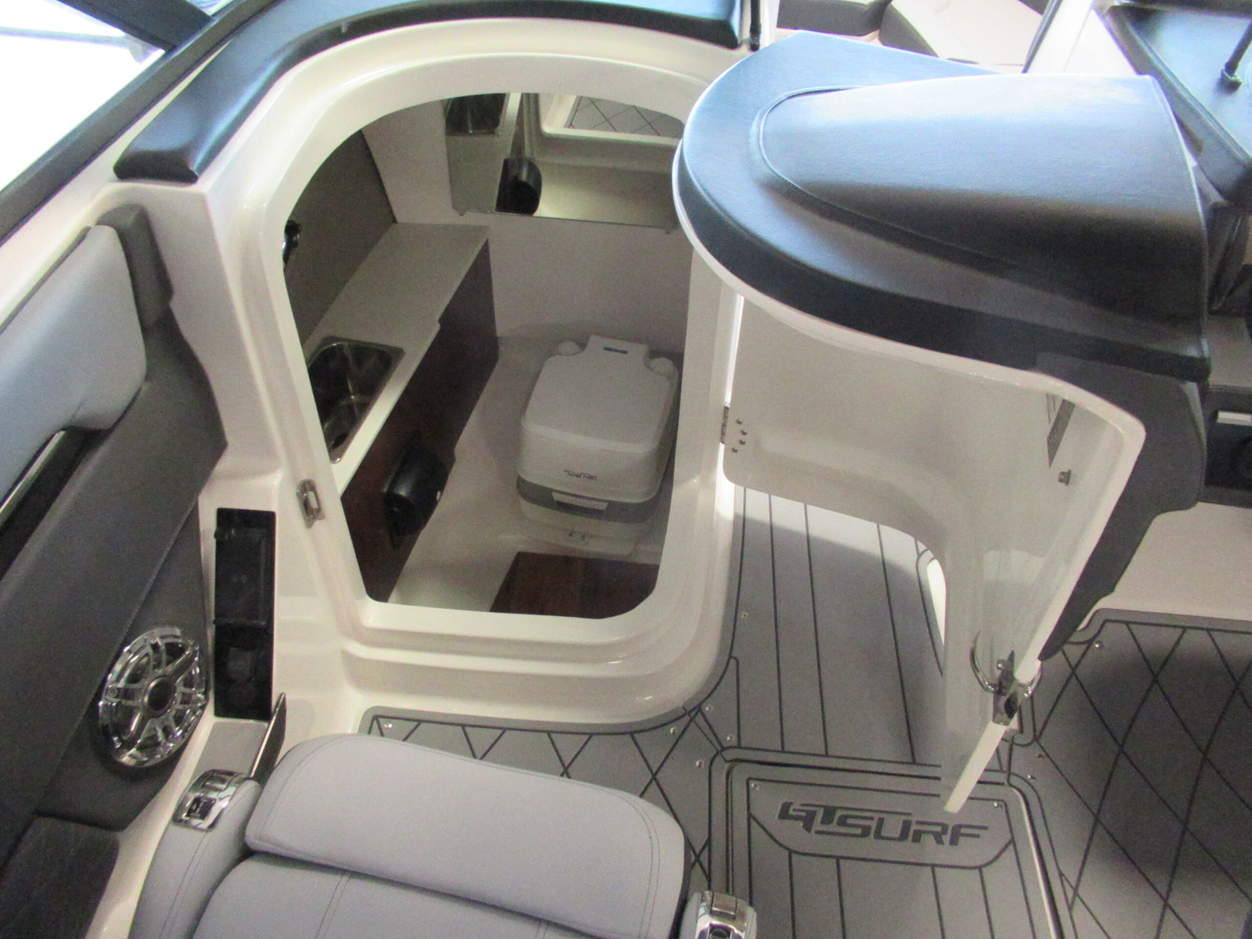 FULL FIBERGLASS HEAD COMPARTMENT W/PORTA POTTIE AND VANITY CABINET