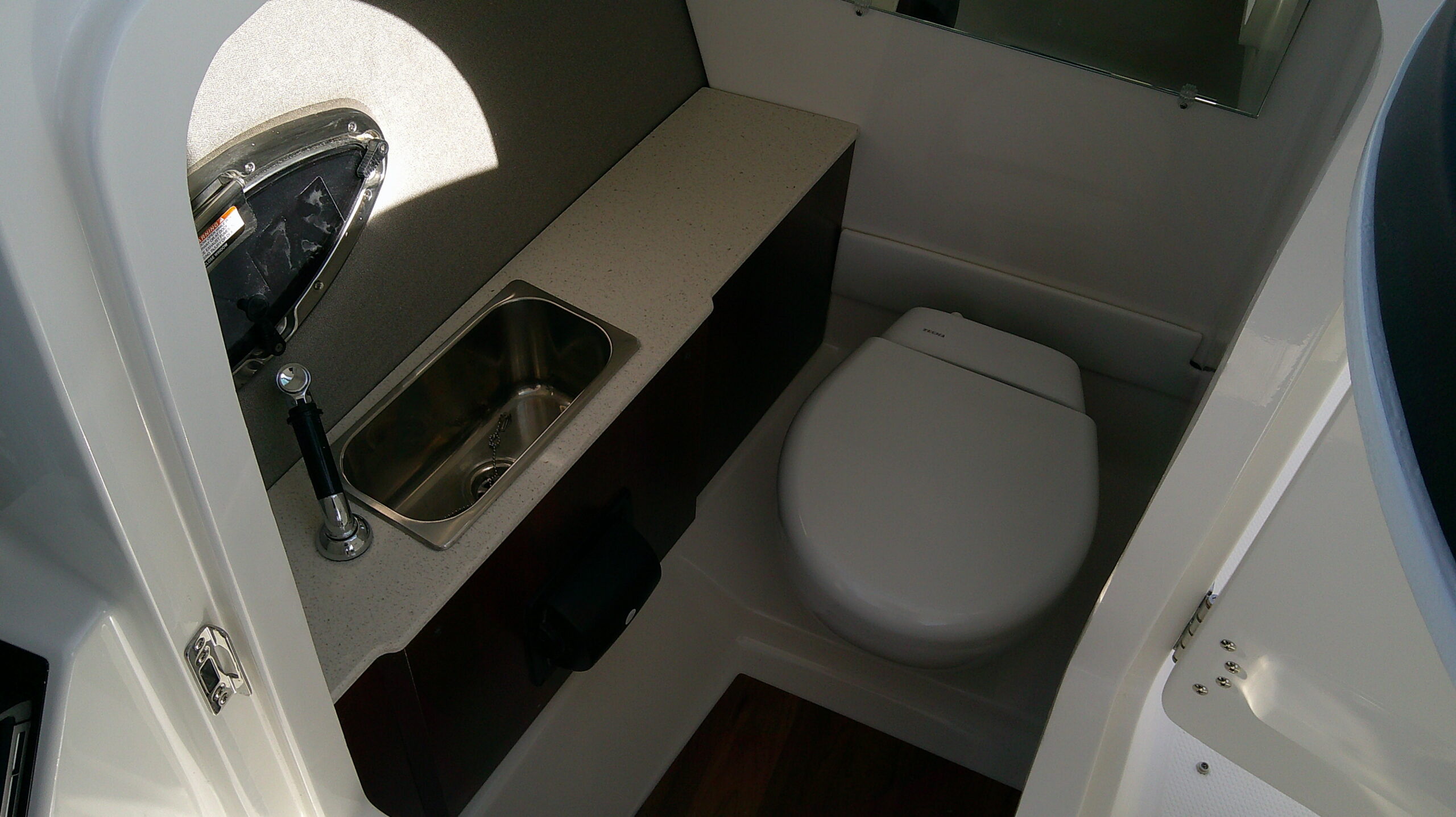 Enclosed Head with Opening Portlight and Vanity Cabinet with Sink