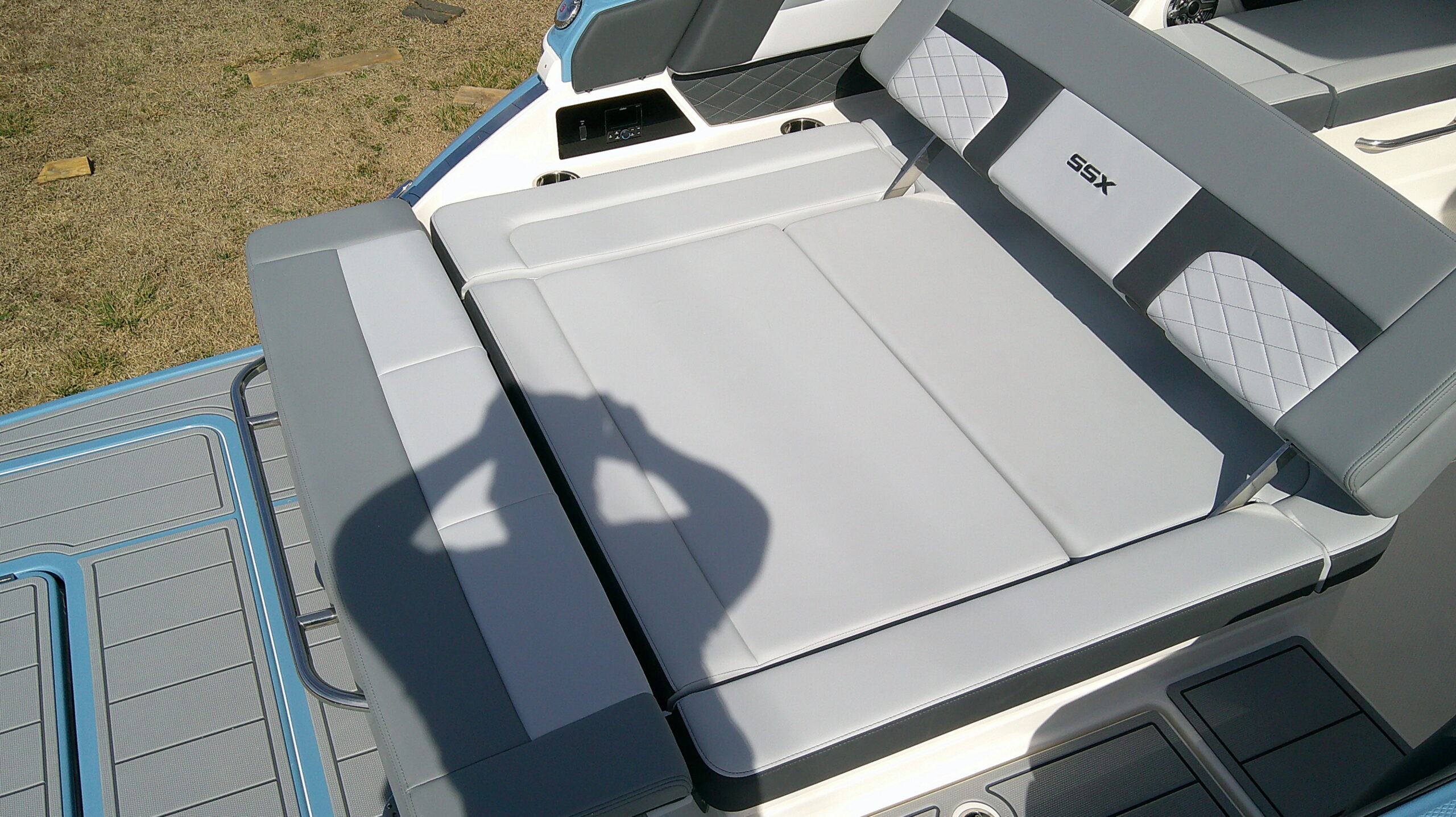 Back-to-Back Aft Seating Converts to Oversized Sun Lounge