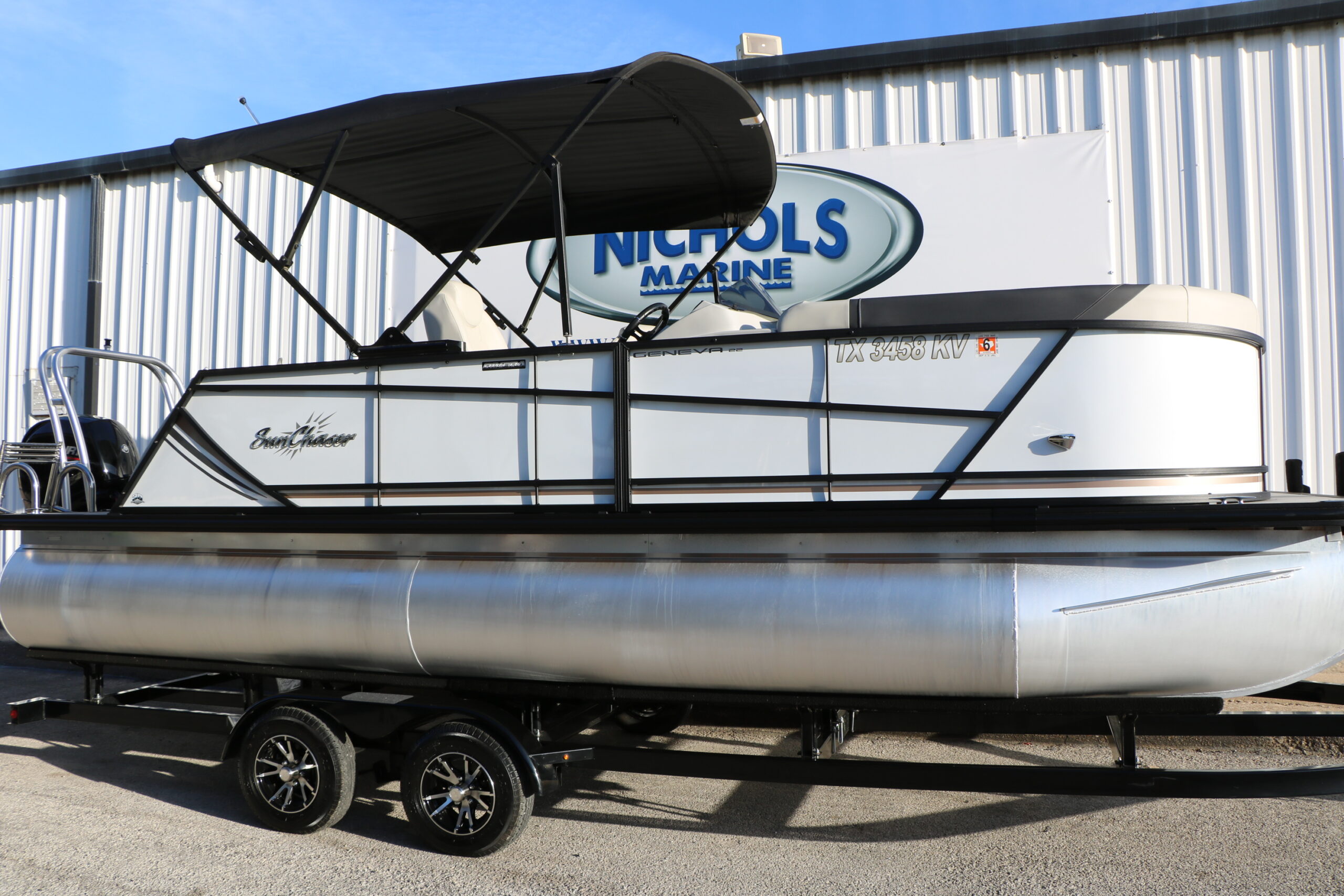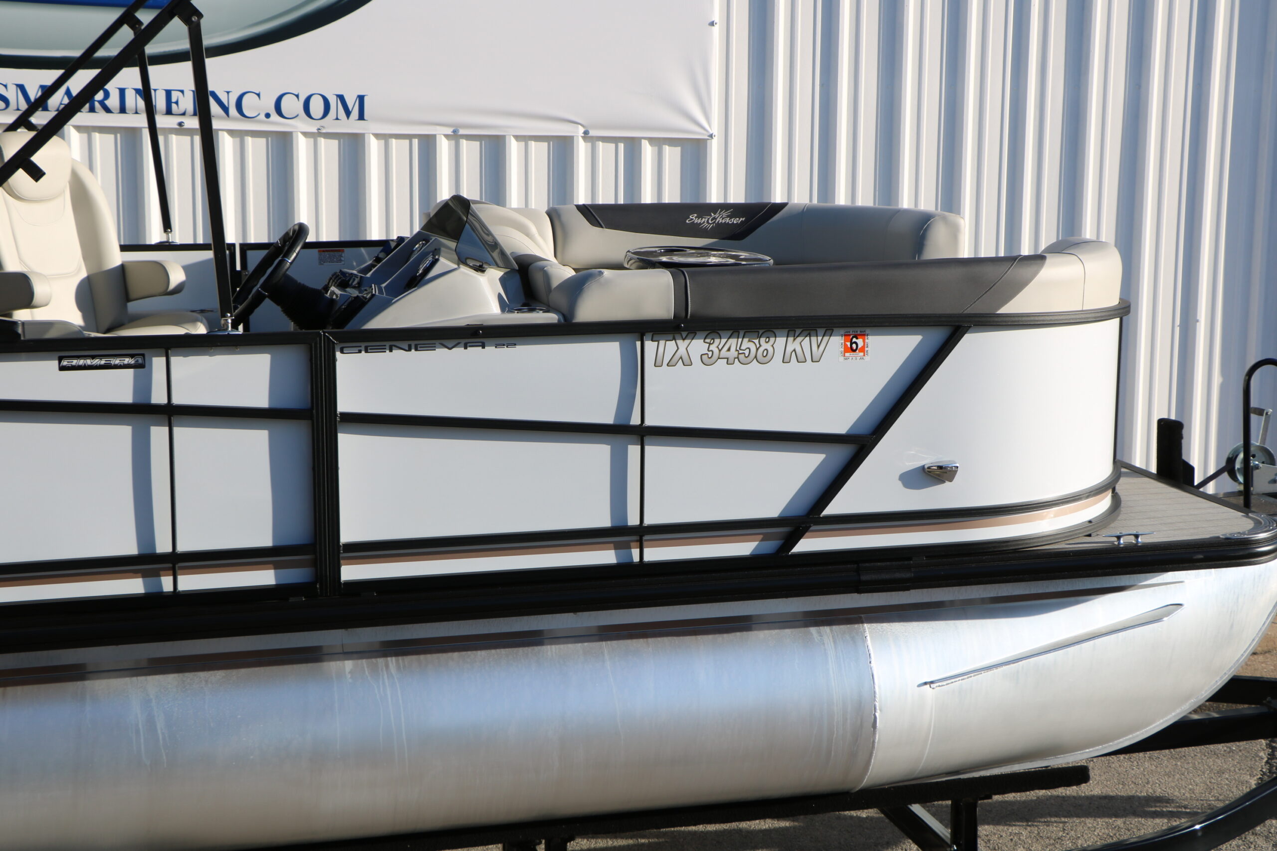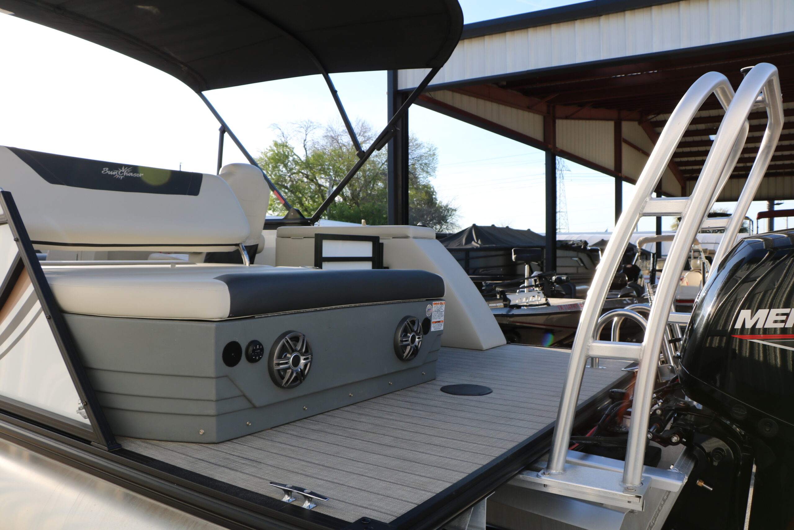 This 2024 SunChaser Geneva 22 SB DH Tri-Toon shows like new and is powered by a Mercury Marine 150 HP four-stroke with only 41 hours. Loaded with comfort features and a high-performance tri-toon package, this boat delivers smooth handling, strong performance, and a premium layout for cruising or watersports.