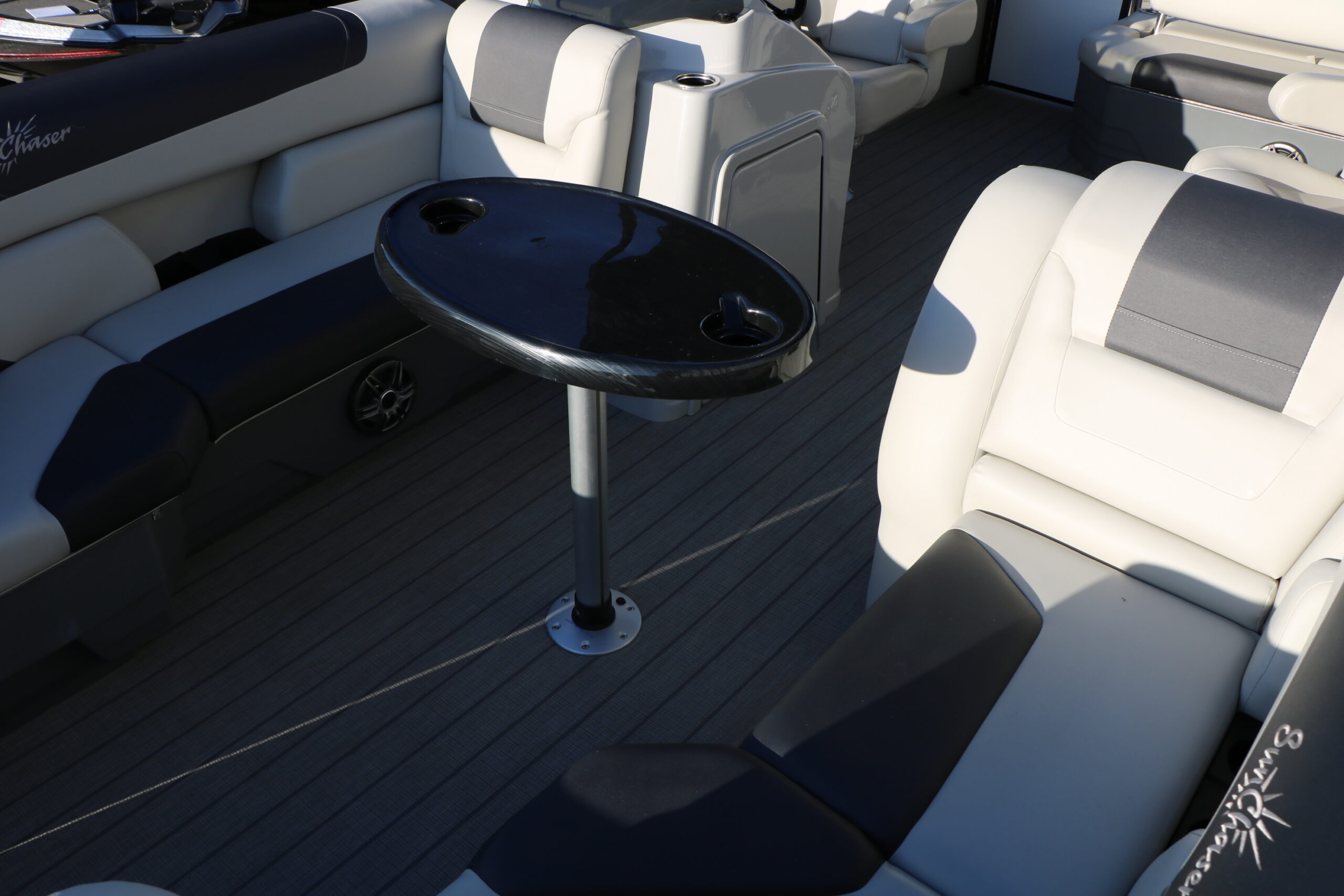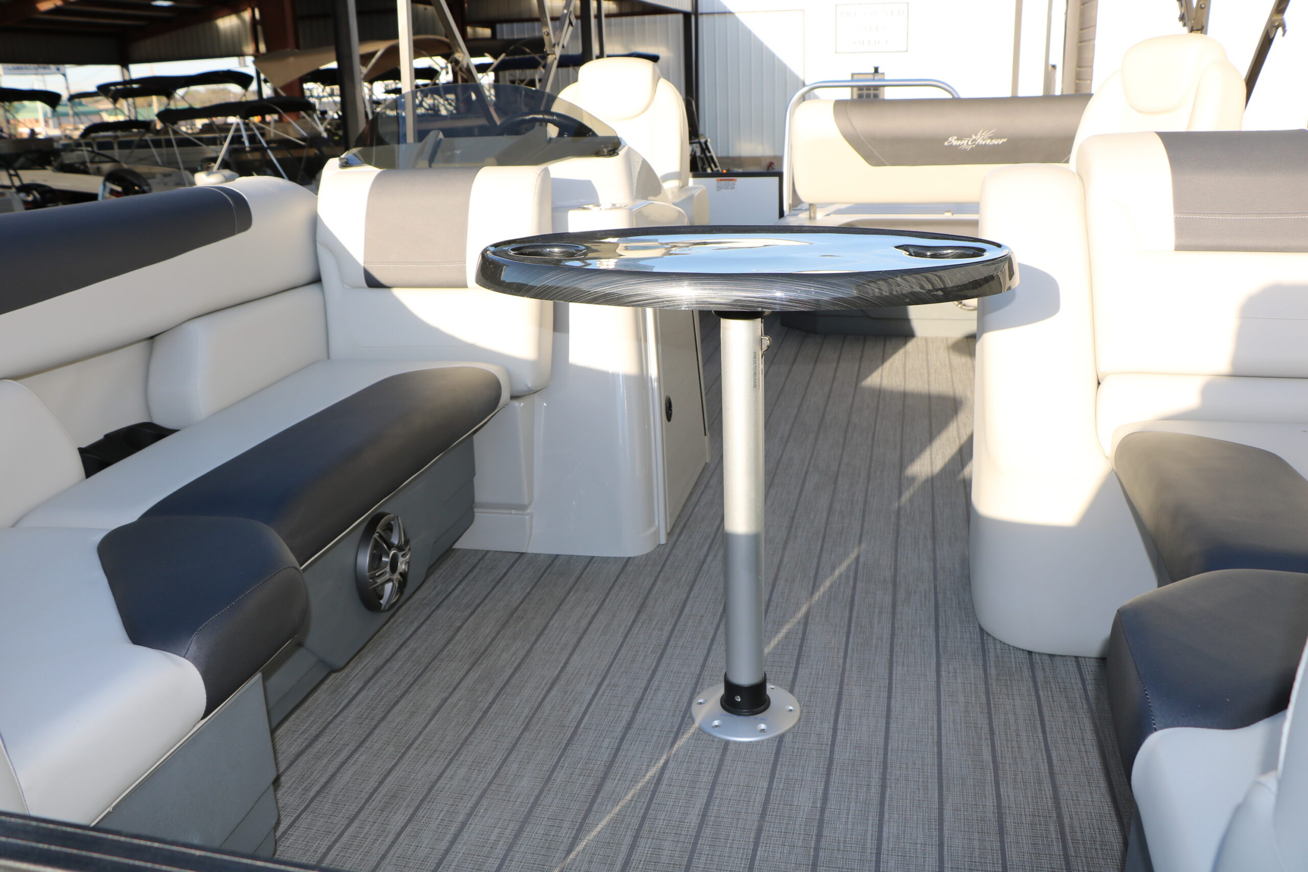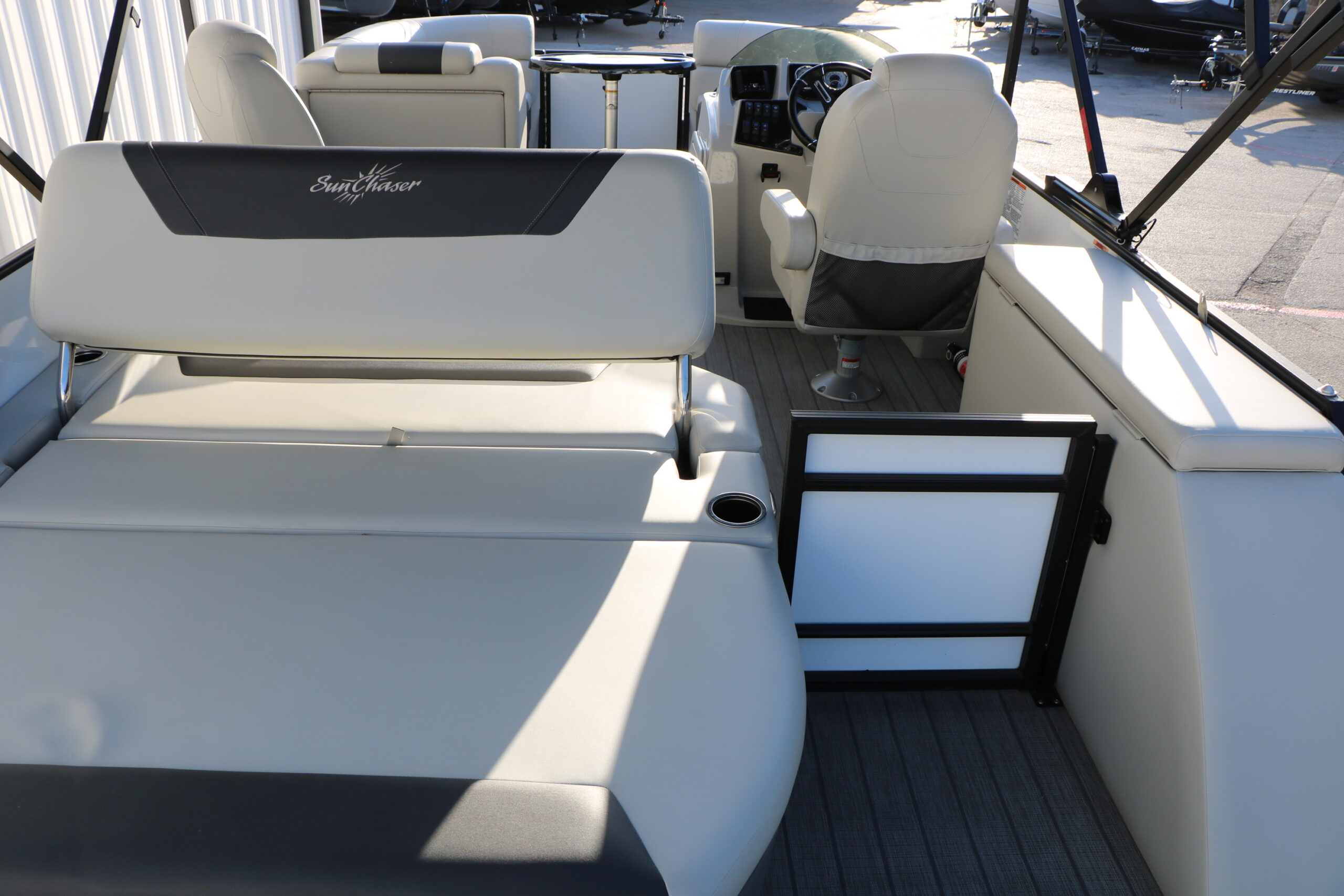 This 2024 SunChaser Geneva 22 SB DH Tri-Toon shows like new and is powered by a Mercury Marine 150 HP four-stroke with only 41 hours. Loaded with comfort features and a high-performance tri-toon package, this boat delivers smooth handling, strong performance, and a premium layout for cruising or watersports.